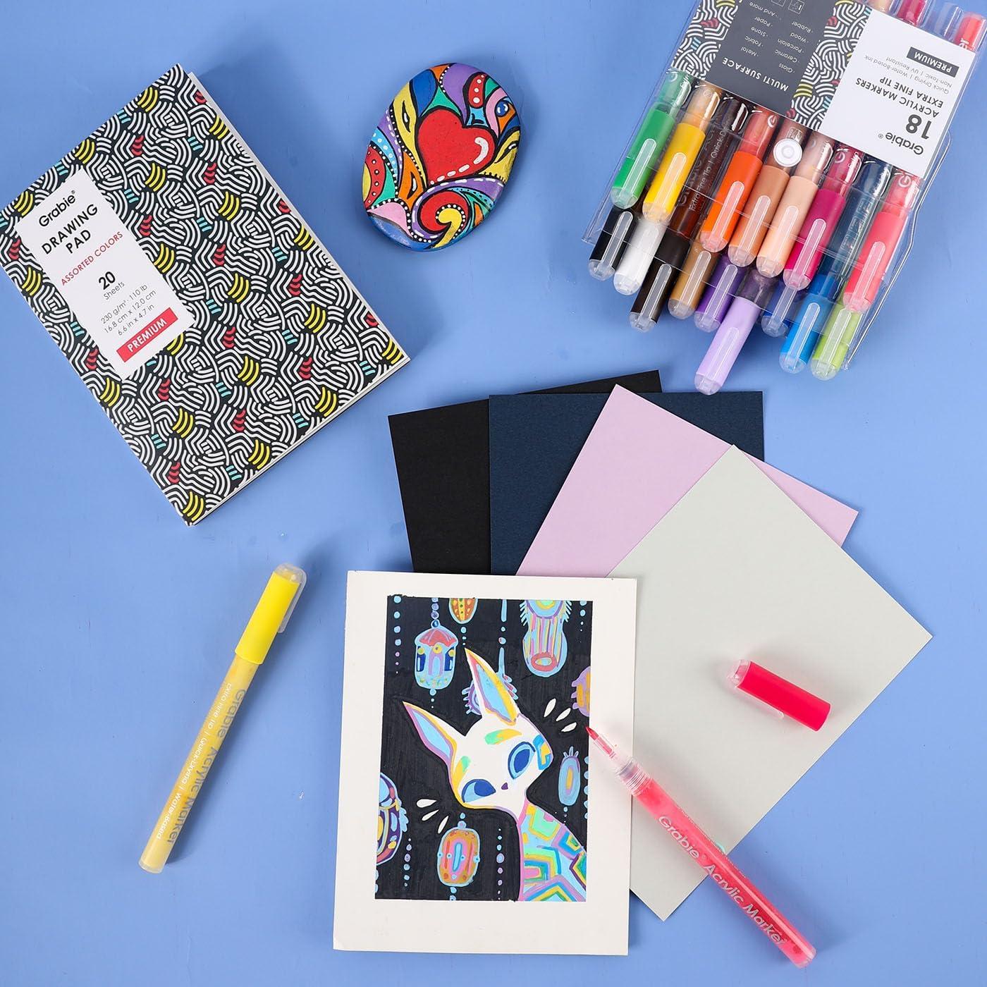 Grabie Acrylic Paint Pens Markers, 18 Colors, 0.7 mm, Extra Fine Tip Drawing Markers, Premium Paint Pens for Painting on Various Surface, Art Supplies(18 Colors Acrylic Markers)