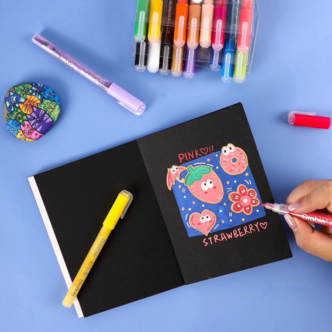 Grabie Acrylic Paint Pens Markers, 18 Colors, 0.7 mm, Extra Fine Tip Drawing Markers, Premium Paint Pens for Painting on Various Surface, Art Supplies(28 Colors Extra Fine Tip Acrylic Markers)