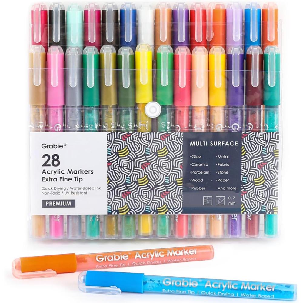 Grabie Acrylic Paint Pens Markers, 18 Colors, 0.7 mm, Extra Fine Tip Drawing Markers, Premium Paint Pens for Painting on Various Surface, Art Supplies(28 Colors Extra Fine Tip Acrylic Markers)
