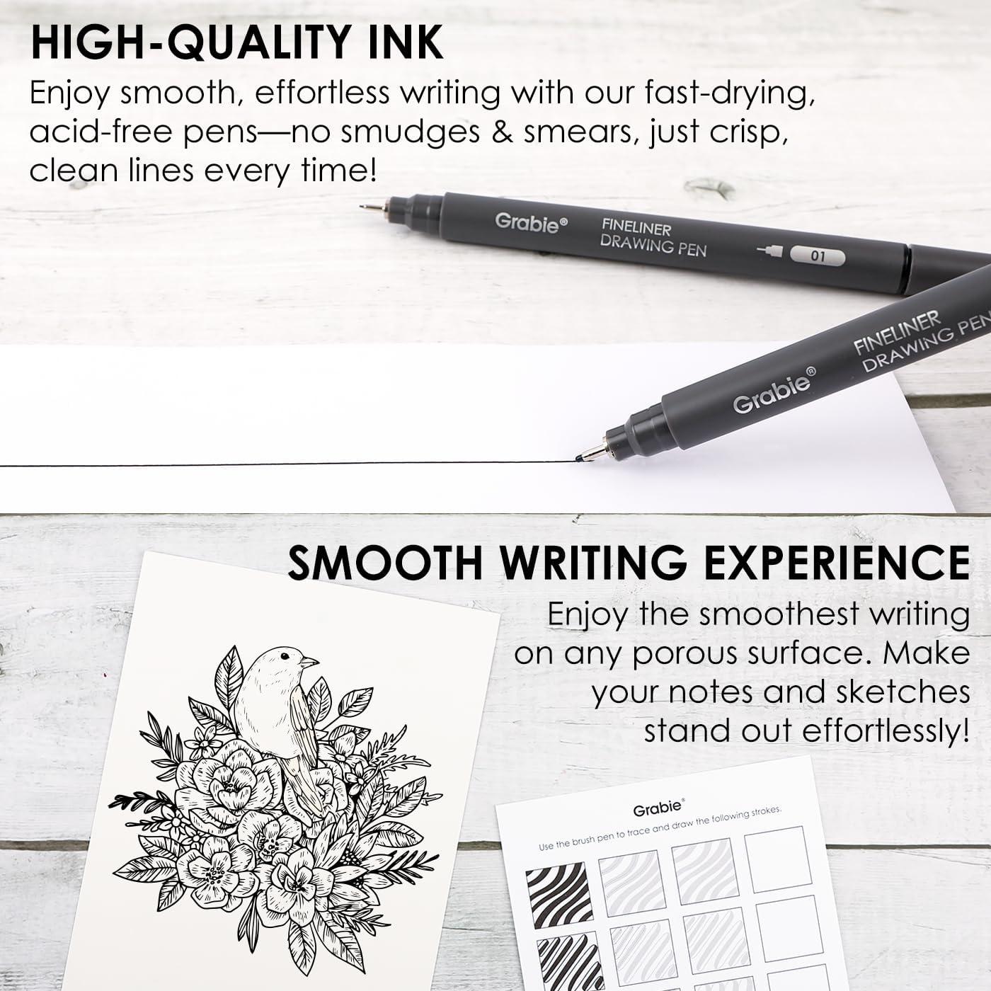 USE THIS PEN SET TO ELEVATE YOUR CRAFT – Featuring a diverse range of 12 Fineliner black pens in various sizes and nib styles. This extensive collection includes tip sizes: 003, 005, 01, 02, 03, 04, 05, 08, 1, 2, 3, and a brush pen. Best selling sizes from very fine to fine, these best-selling sizes are perfect for writing, outlining, or drawing, providing complete accuracy and total comfort while allowing you to create precise lines every time.