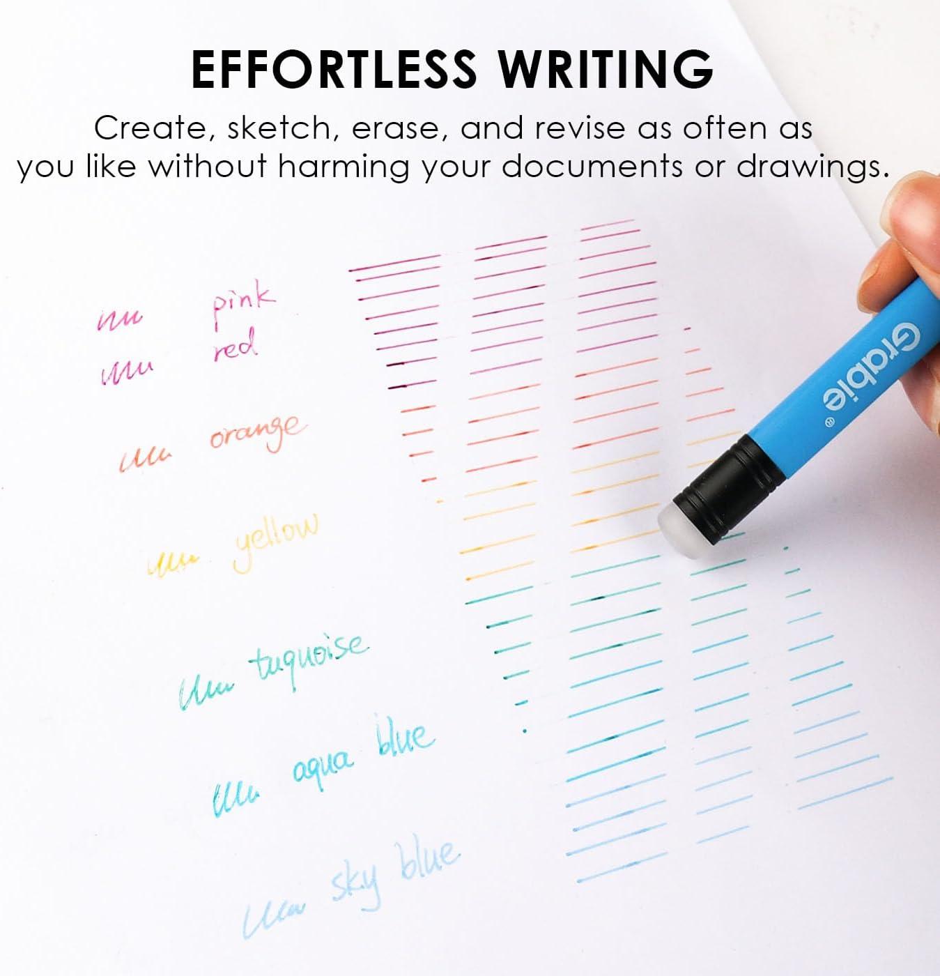 USER-FRIENDLY DESIGN – Grabie’s erasable gel pens feature a user-friendly design that mimics the familiar feel of a pencil, making them approachable for everyone. The convenient twist-to-open function allows for quick access to different colors, eliminating the hassle of lost caps and ensuring you're always ready to jot down ideas. The integrated pen eraser allows you to correct mistakes easily—an ideal ink eraser pen for students and creatives alike.