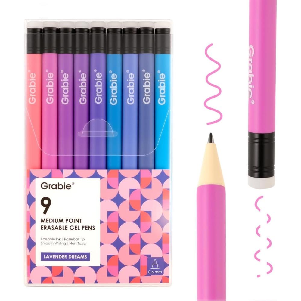 9 VIBRANT COLOR – Elevate your creativity with Grabie’s Medium Point Erasable Gel Pen Set, featuring an impressive collection of 9 vibrant colors. Lavender Dreams for dreamy blue-purple shades. This diverse color selection allows you to express your artistic vision with endless possibilities, perfect for bullet journaling, study notes, and planner decoration using the best gel pens.