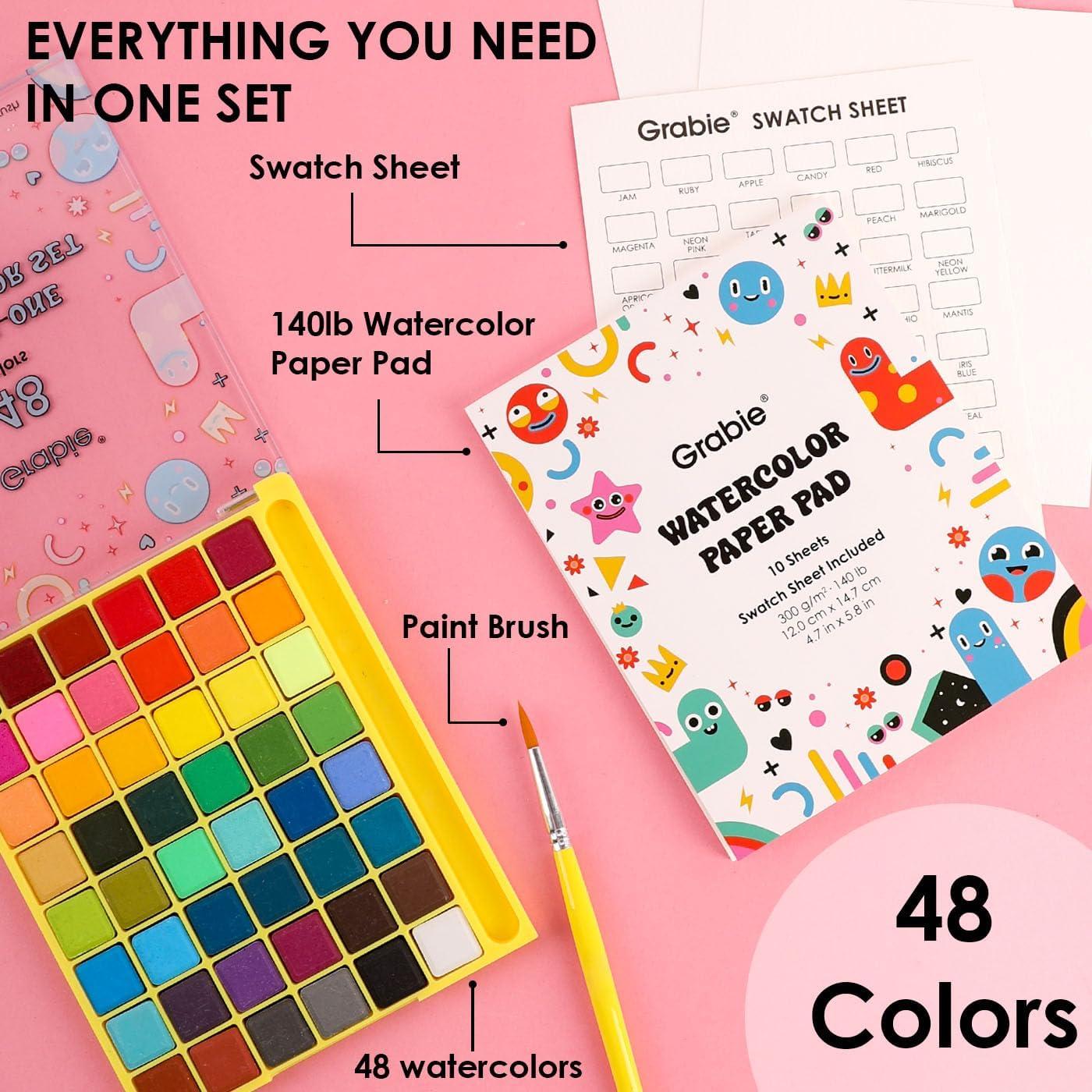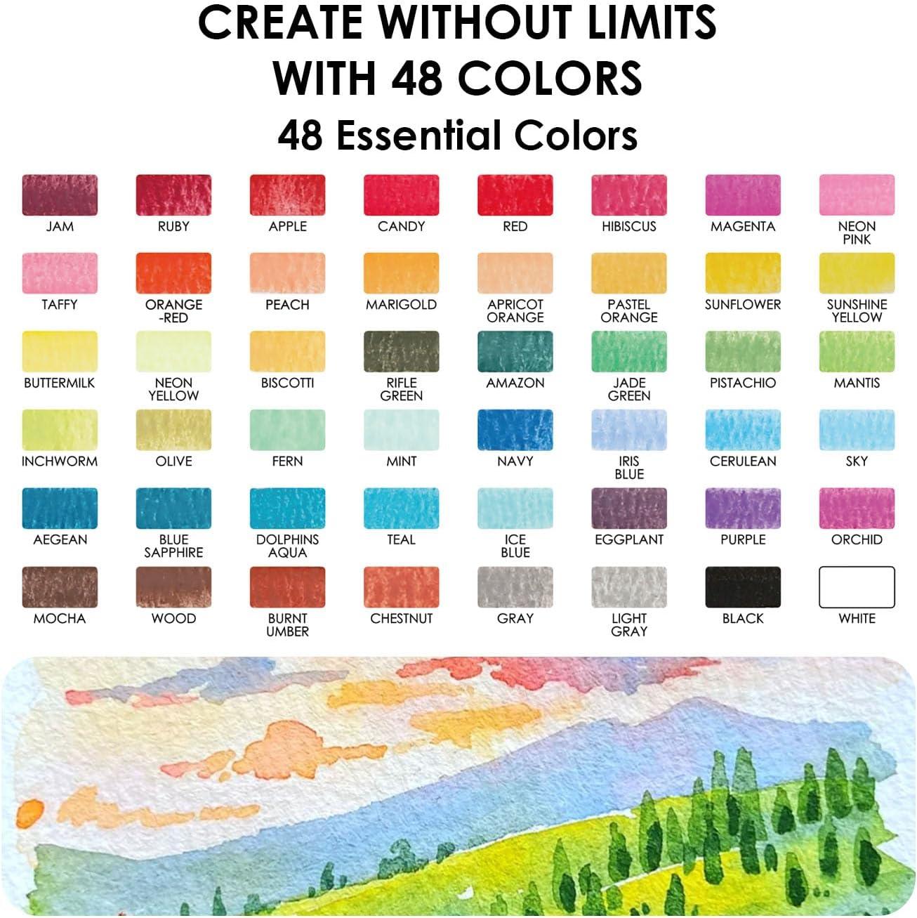 48 Vibrant Watercolor Paints: Full-color range for mixing and creating any hue you imagine.