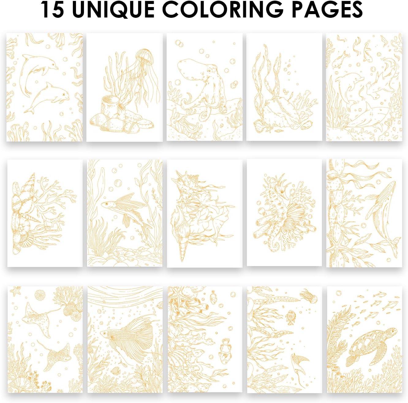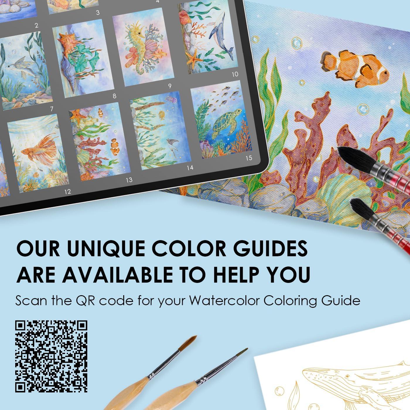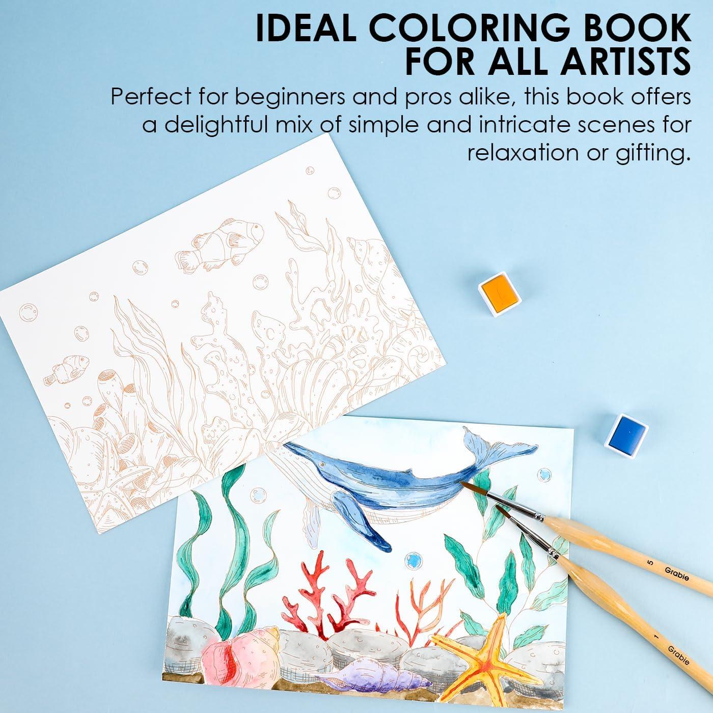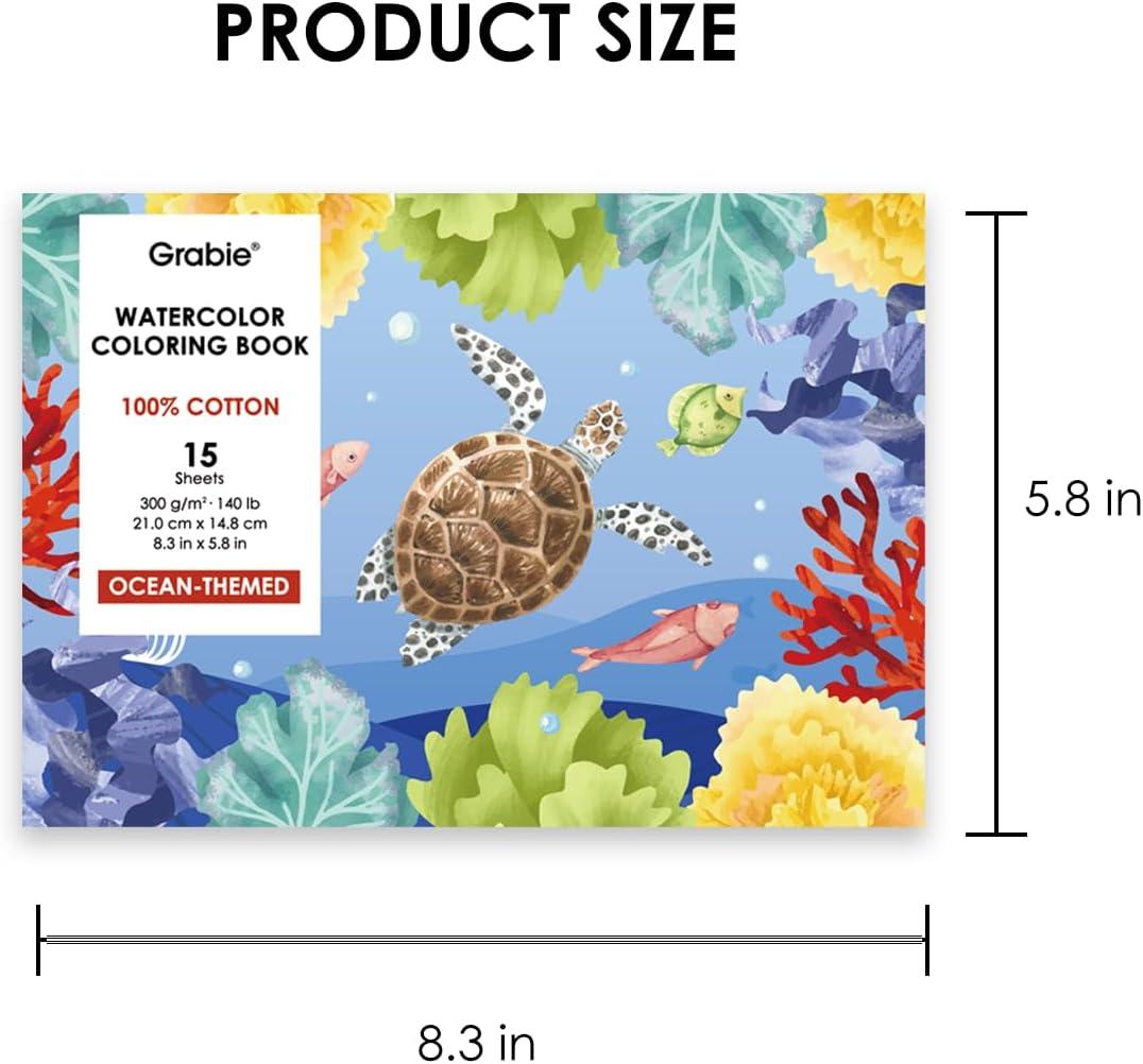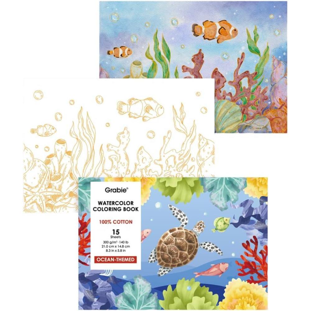 Grabie Watercolor Coloring Book, 15 Sheets A5 (8.3 x 5.8),Watercolor Book for Adults: Ignite Your Artistic Expression on 100% Cotton Paper (Ocean)(Ocean)